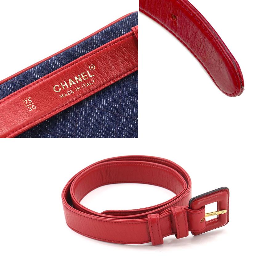 シャネル CHANEL ウエスト バッグ ポーチ デニム レザー ブルー レッド ヴィンテージ ゴールド 金具 Waist Belt Bag