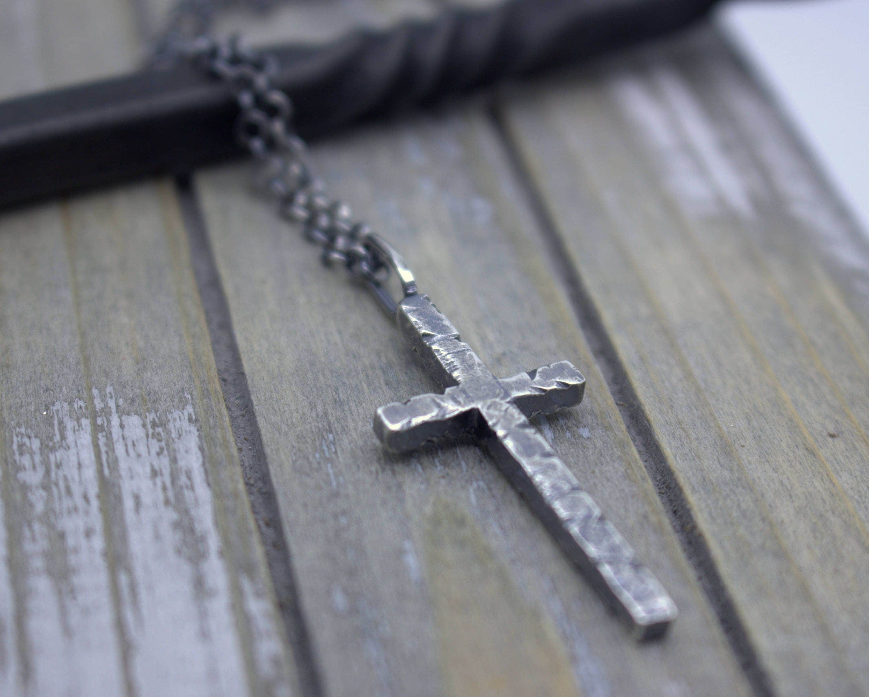 Mens Sterling Silver Cross Necklace Rugged cross charm