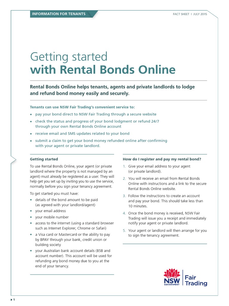 Getting Started With Rental Bonds Online Information For Tenants PDF