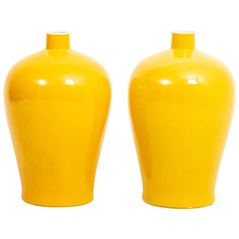 Pair of Yellow Bottle Neck Vases at 1stDibs