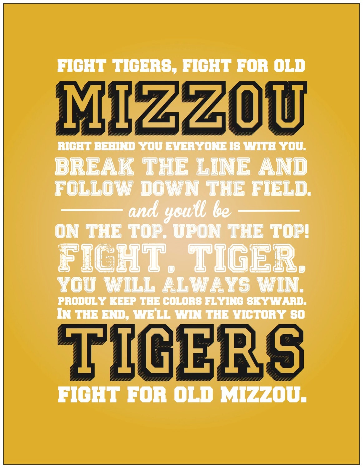 Missouri Tigers Fight Song Print Etsy