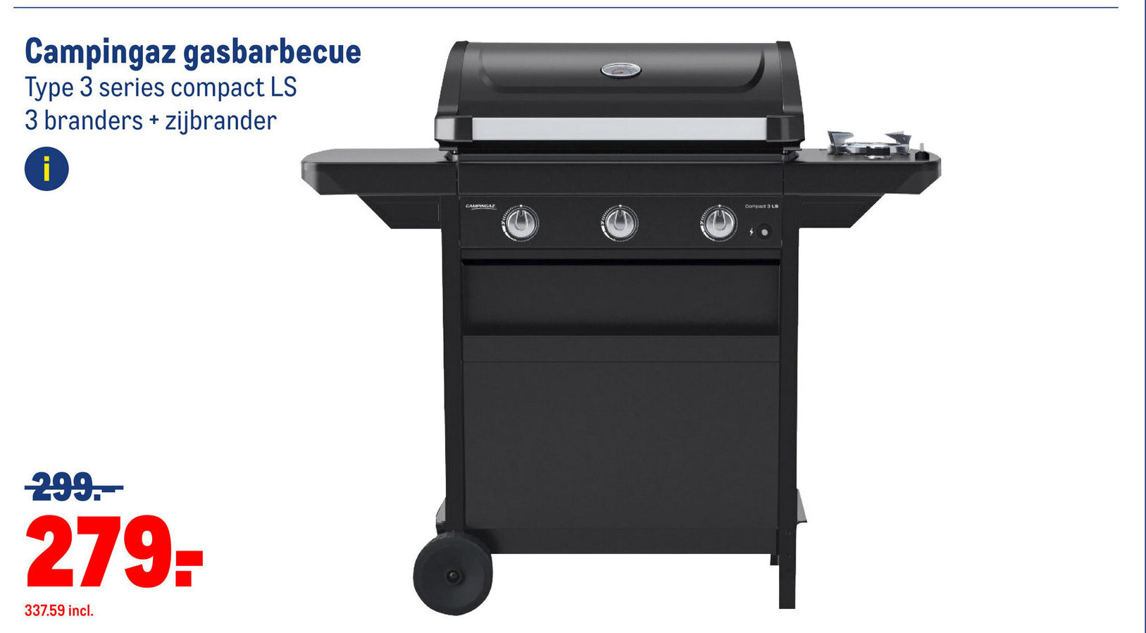 Campingaz gasbarbecue Type 3 series compact LS 3 branders + zijbrander