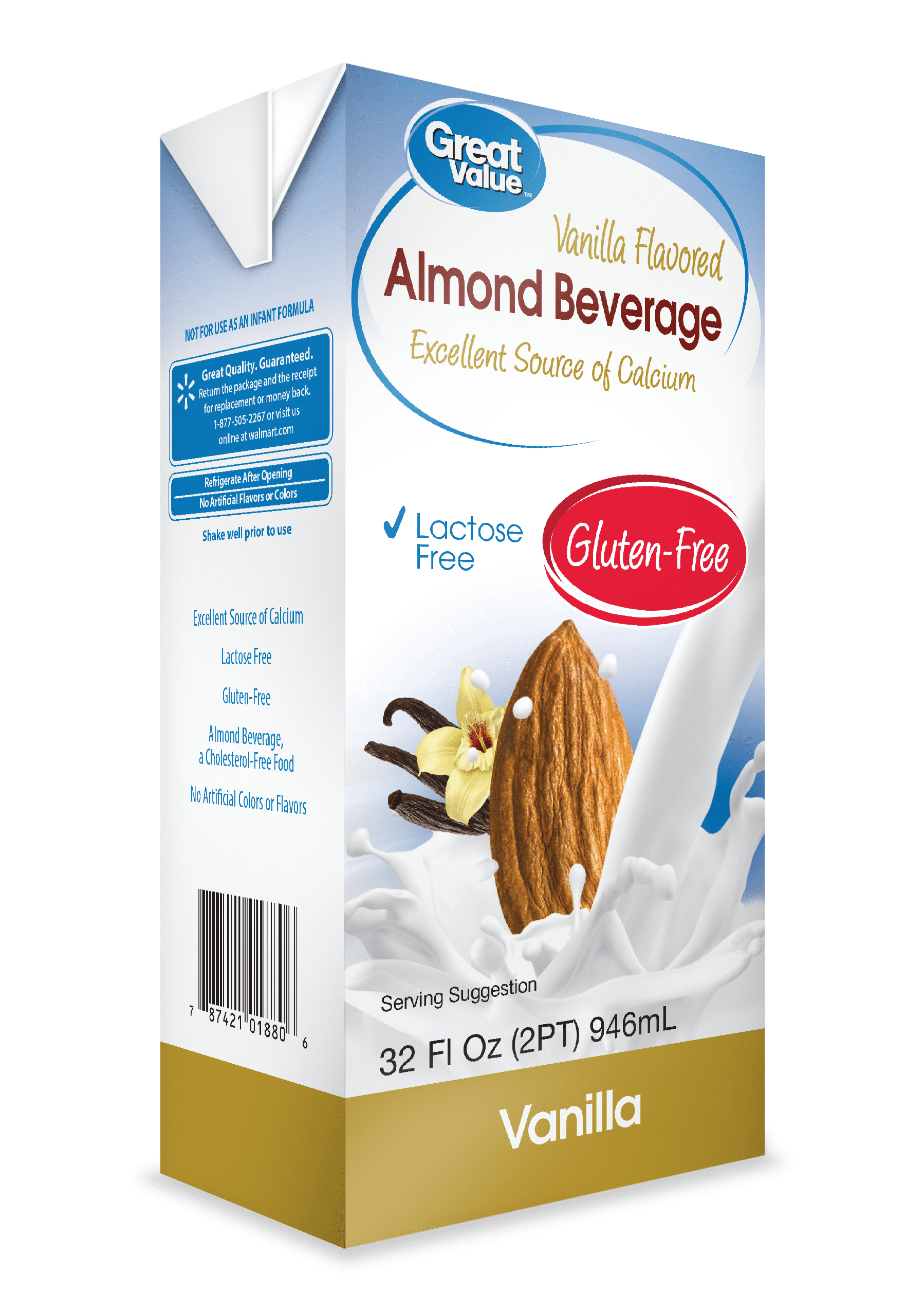 Great Value Vanilla Almondmilk, 64 fl oz Vanilla Almond Milk Great Value Free from dairy, gluten, carrageenan,. Enjoy the wholesome taste of great value vanilla almondmilk. 50% more of the daily value of. Excellent source of calcium and antioxidant vitamin e. 2000 calories a day is used for. Vitamin d to support strong bones. The % daily value (dv) tells you how much a nutrient in a serving of food contributes to. Vanilla Almond Milk Great Value.