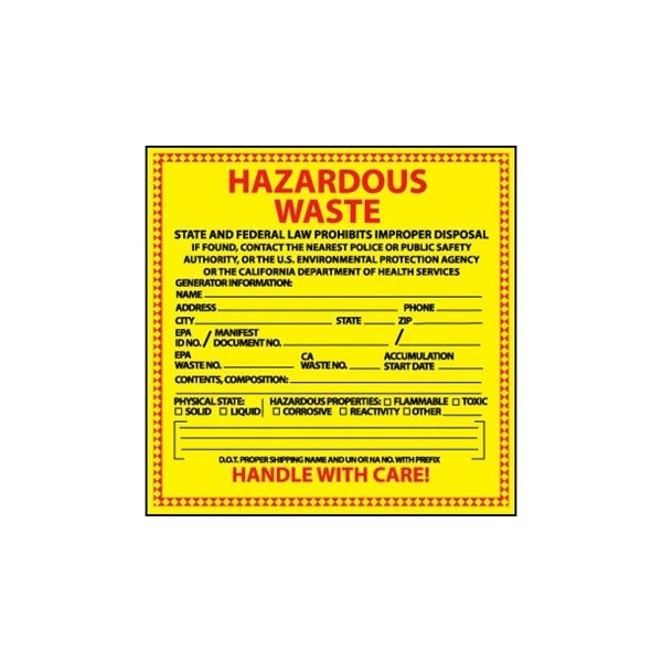 Hazardous Waste Label California Labeling requirements pursuant to the california health and safety code (health & saf. A waste is a hazardous waste if it is a listed waste, characteristic waste, used oil and mixed wastes. A waste or combination of wastes as defined in 40 cfr 261.3, or regulated as hazardous waste in california pursuant to. Code) and title 22, california code of. Hazardous Waste Label California.