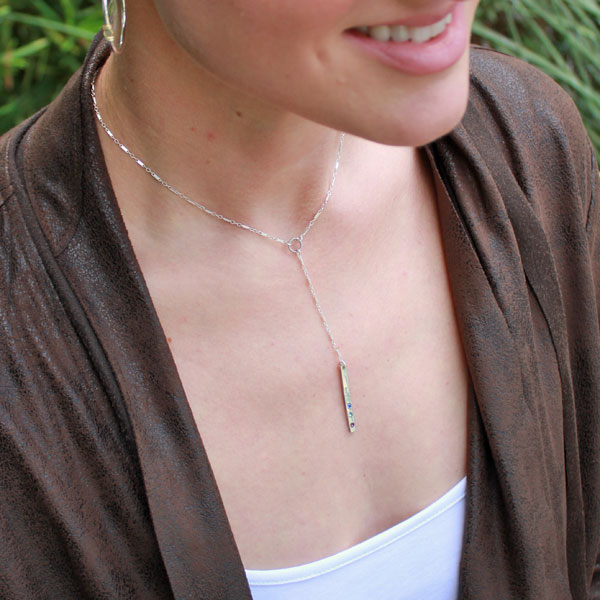 Personalized Silver Bar Lariat Necklace with Swarovski Crystals