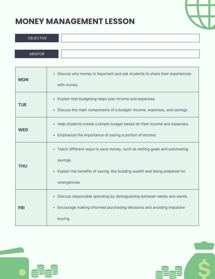 Green Minimalist Money Management Lesson Money Management Lessons For Middle School Hands on banking offers over 30 lesson plans for elementary, middle, and high school students to learn about money skills. Explore topics such as money, budgeting, saving,. How to teach middle school students financial literacy and money management skills in a way that stays with them throughout their lives. Learn how to teach your middle school students basic financial literacy. Money Management Lessons For Middle School.
