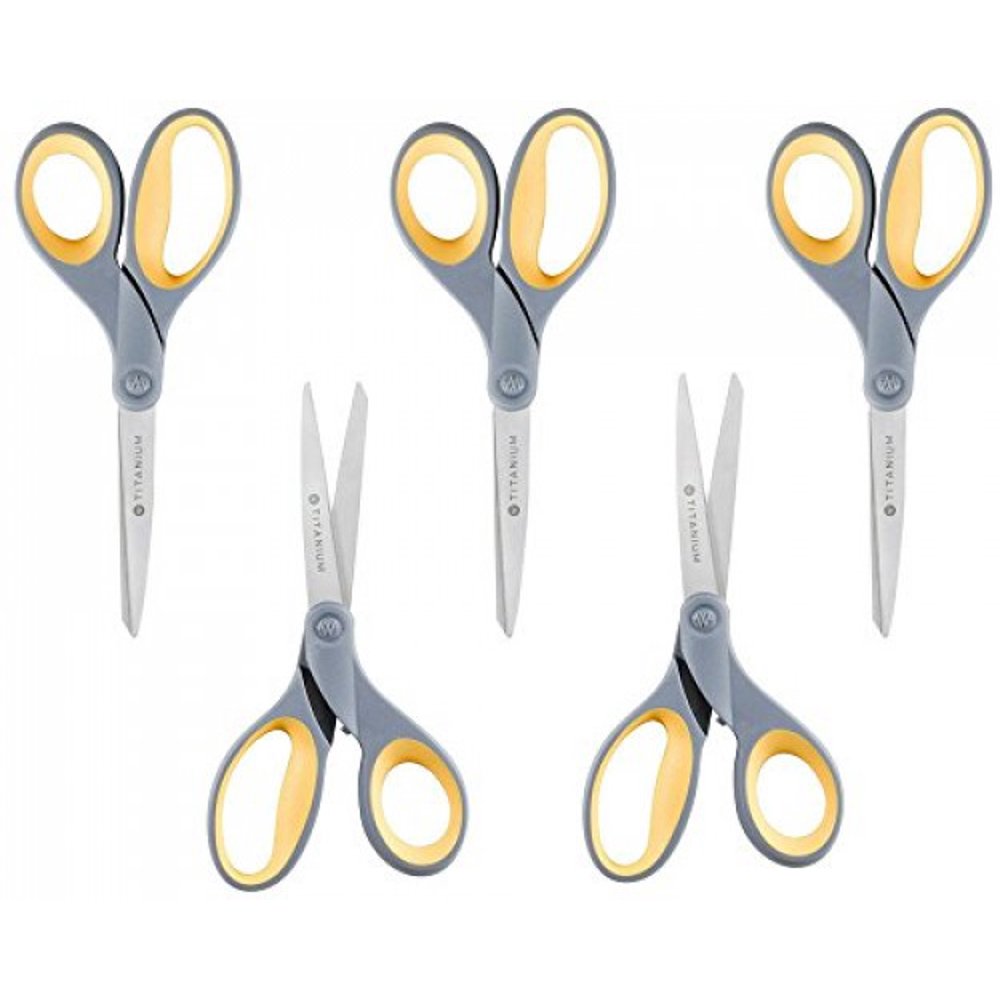 Westcott Scissors Titanium. Westcott titanium bonded craft scissors are three times harder than untreated stainless steel blades. Titanium bonded blades are 3x harder than stainless steel, blades stay sharper longer. Westcott 8 titanium bonded fashion scissors, bent. Contoured soft grip handles for maximum.