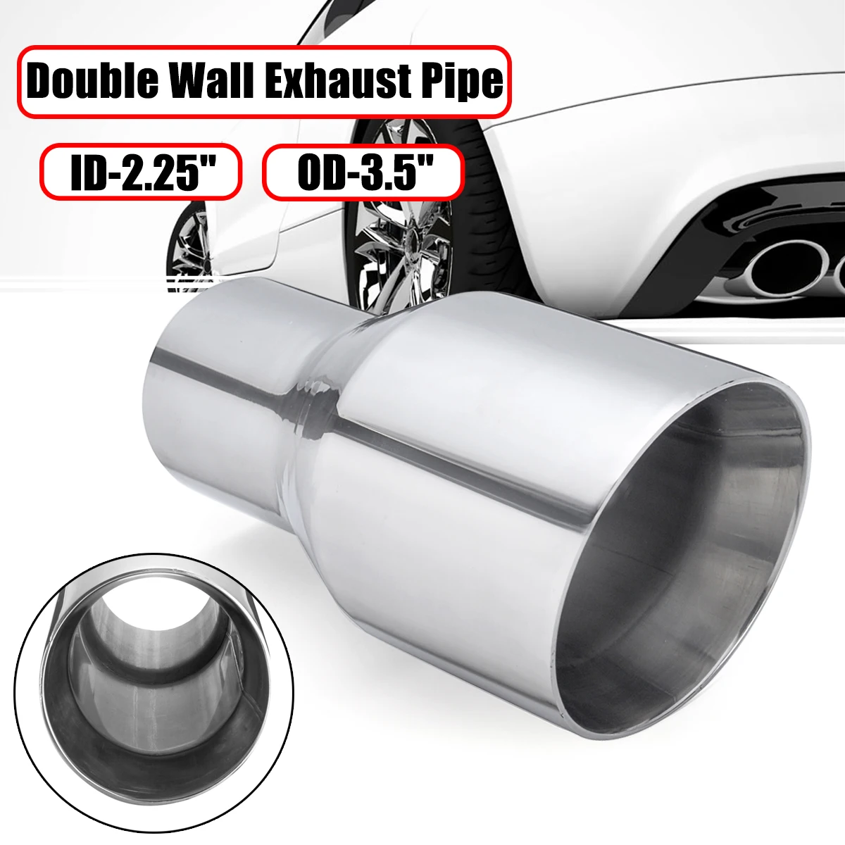 Universal 2.25" Inlet 3.5" Outlet Car Exhaust Tip Auto Tail Pipe