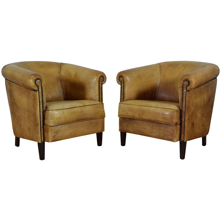 Pair of English Light Tan Leather Club Chairs, Mid20th Century at 1stDibs