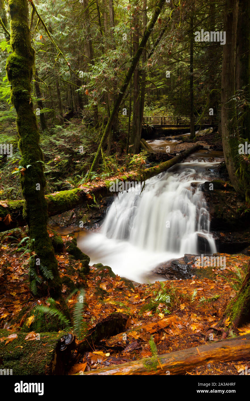 Waterfall in Cliff Gilford Park, Roberts Creek, BC, Canada Stock Photo