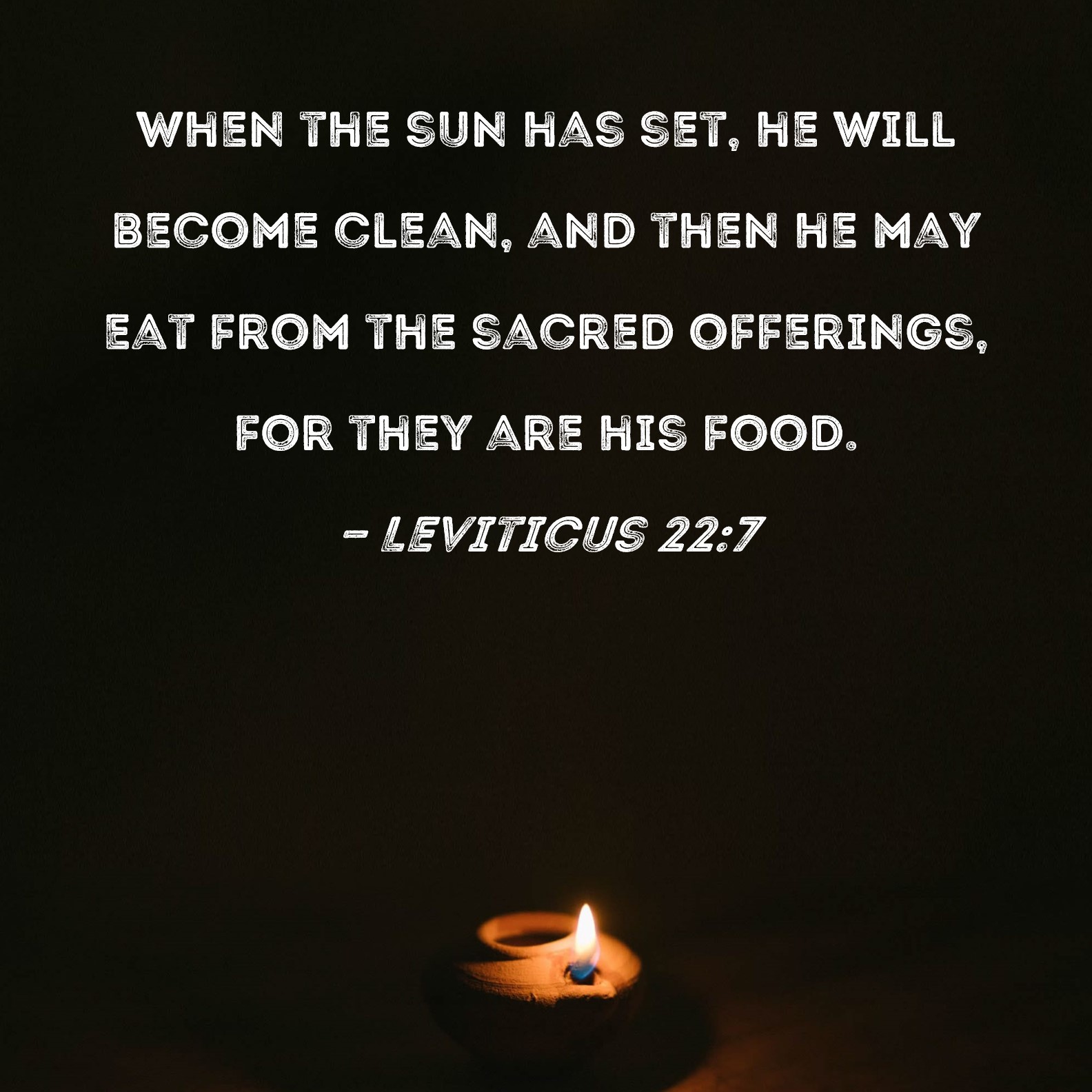Leviticus 227 When the sun has set, he will clean, and then he