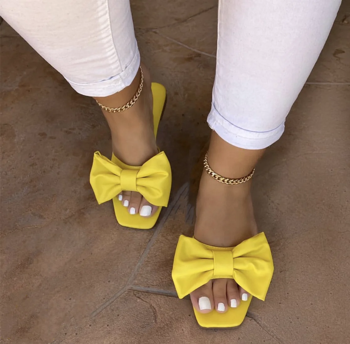 Fancy Bow Style New Design Women Slippers Lady Fashion Flat Slides