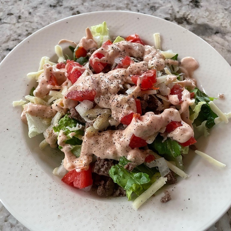Burger Salad with Special Sauce Dressing (Paleo/Whole30 friendly Burger Salad On Top Or Bottom Ultimate loaded burger salad, directions: Learn how to make a quick and easy cheeseburger salad with ground beef, lettuce, tomatoes, pickles, onions, cheese and a delicious burger sauce. Crisp lettuce topped with seasoned ground beef, cheddar cheese,. Find out how to make 15 delicious salads that. Sprinkle with blue cheese and drizzle with mayo. Pile lettuce, tomatoes, onion, and pickles. Burger Salad On Top Or Bottom.