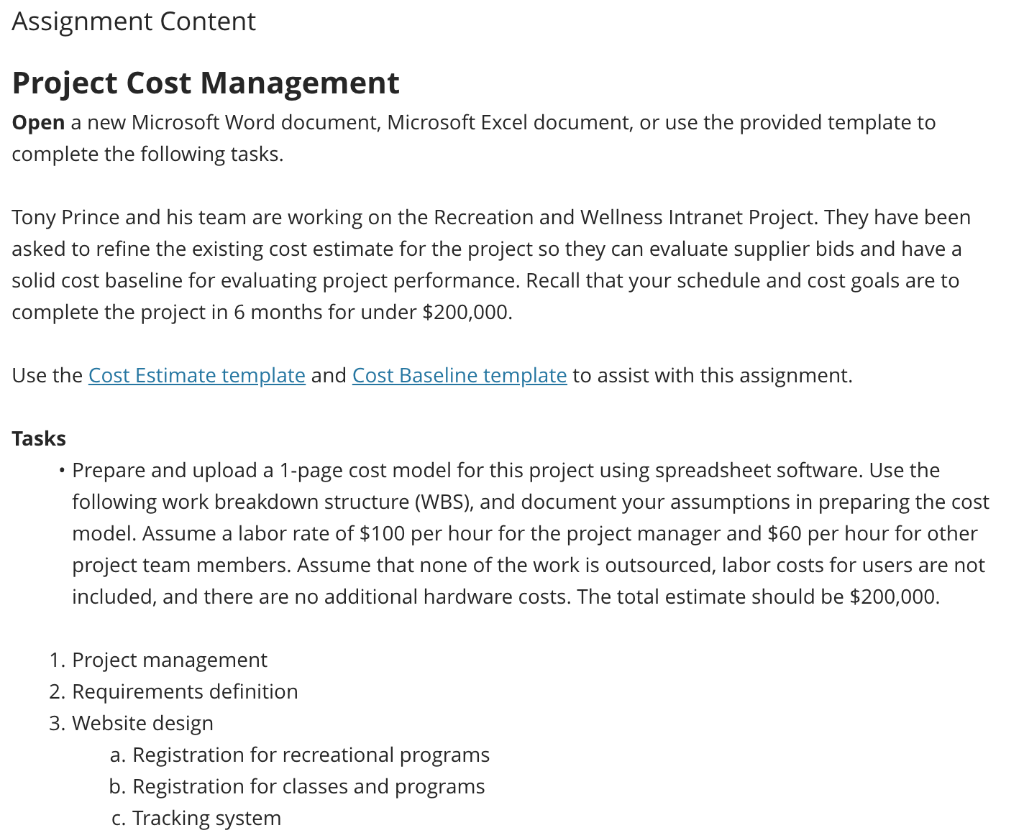 Assignment Content Project Cost Management Open a new