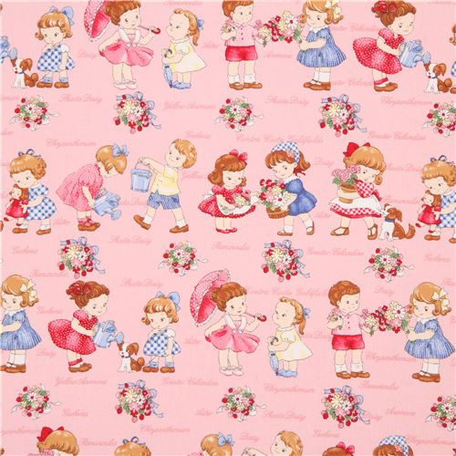 pink Lecien fabric flower children word Fabric by Lecien modeS4u