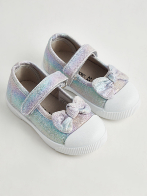 Silver Glitter Canvas Pumps Kids at ASDA