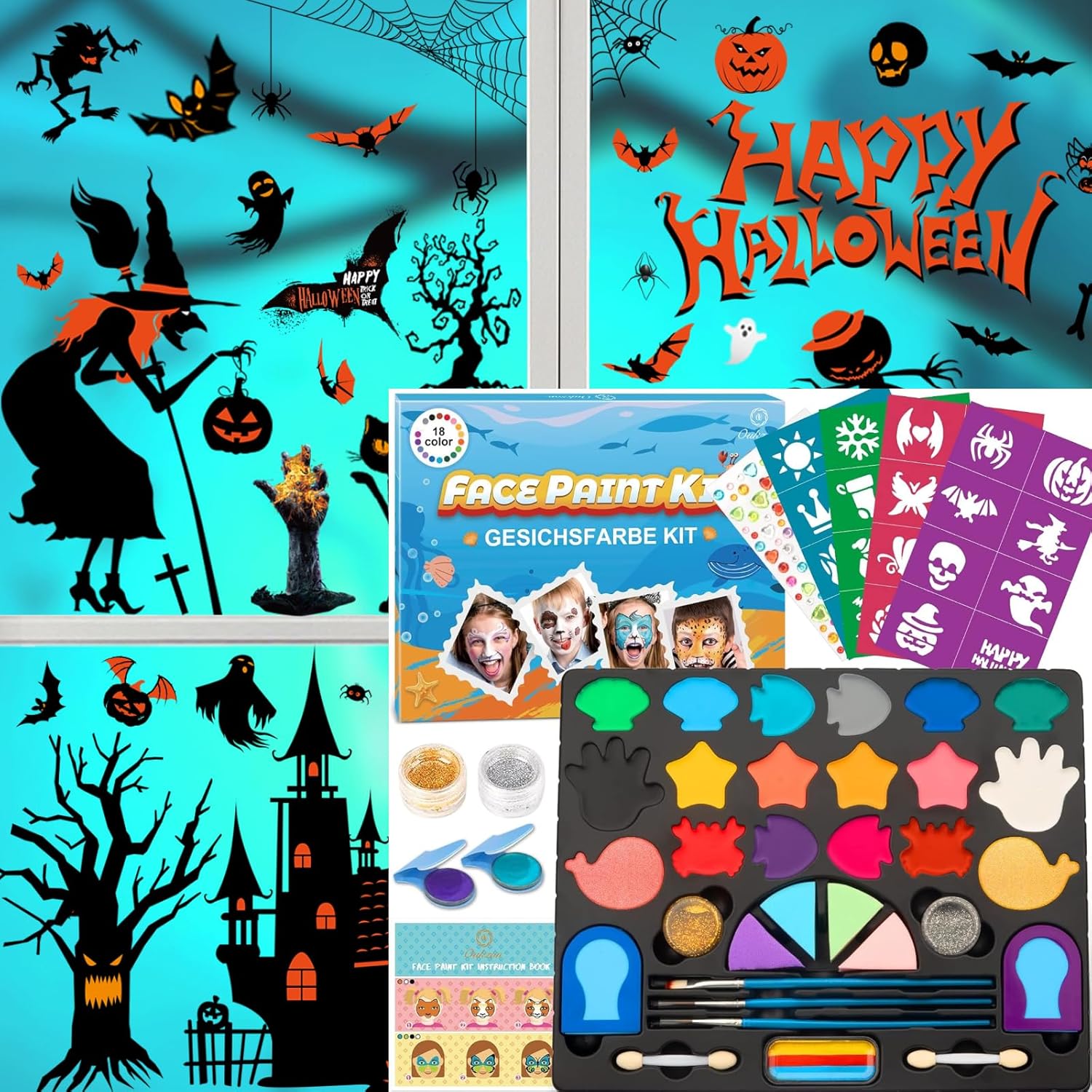 Oukzon Face painting Kit for Kids 18 Colors & 180pcs Face