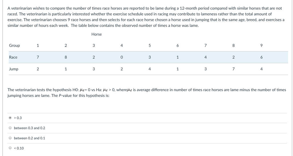 Solved A veterinarian wishes to compare the number of times