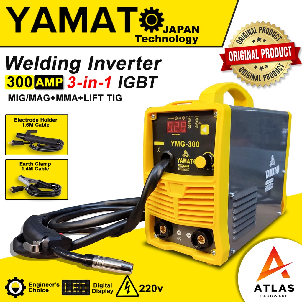 YAMATO JAPAN 300A Gasless 3 IN 1 MIG TIG MMA IGBT Portable Inverter