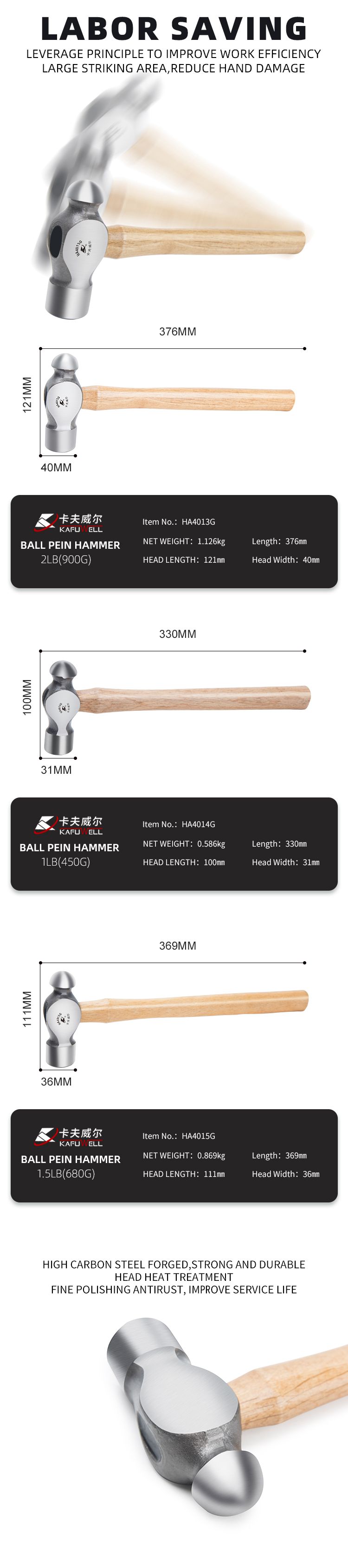 KAFUWELL HA4013G Ball joint Hammer with Wooden Handle
