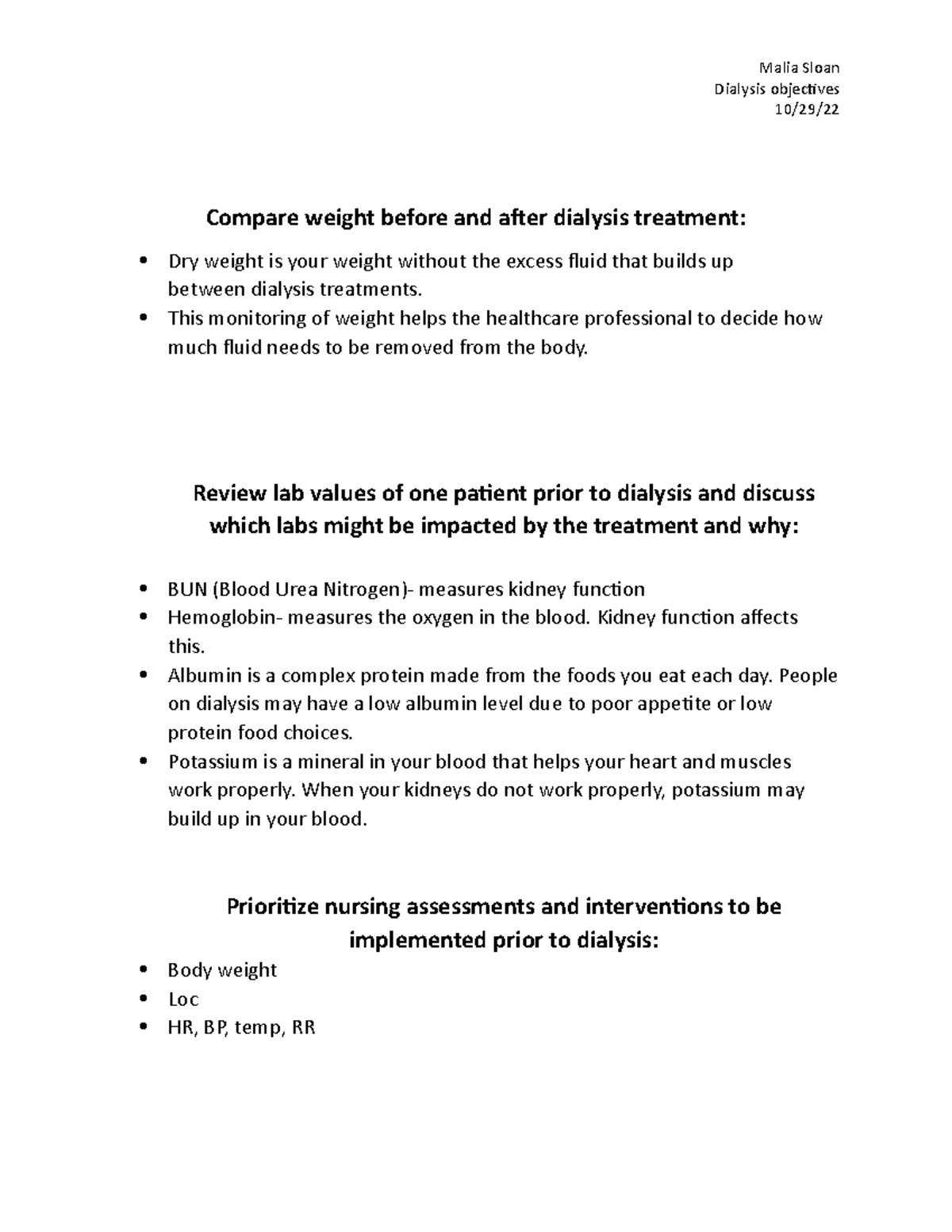 Dialysis This monitoring of weight helps the healthcare professional to decide how much fluid