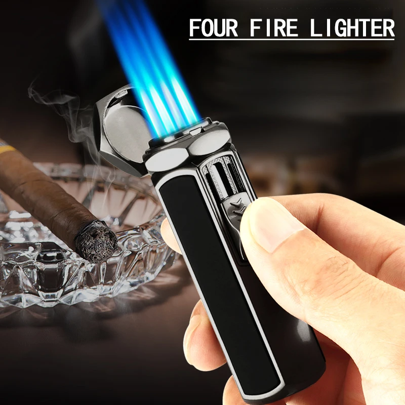 New Open Lid Four Flame Firepower Gas Lighter Metal Windproof Luxury Cigar Gadgets For Men
