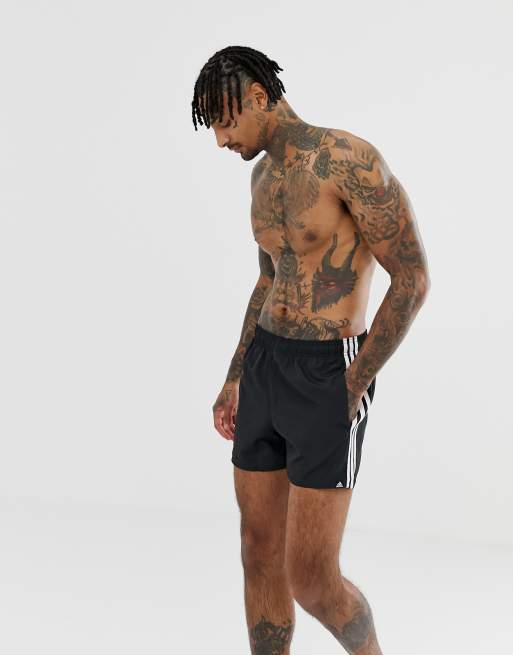 Adidas swim shorts with stripes in black ASOS