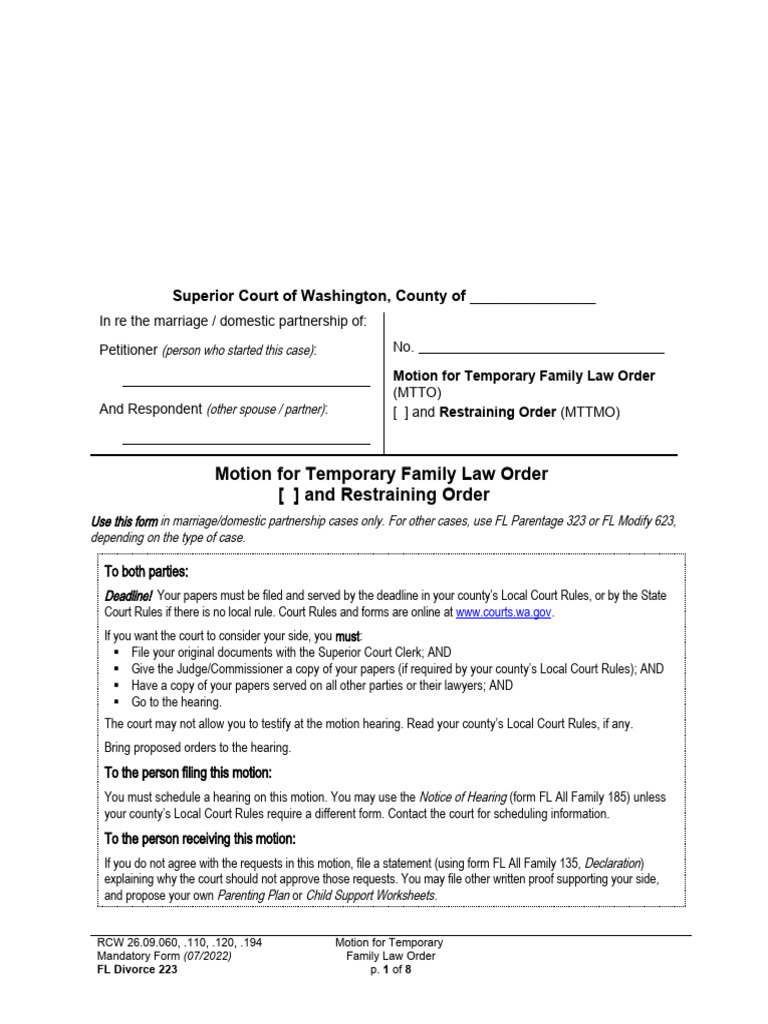 FL Divorce 223 Motion For Temp Family Law Order 2022 07 PDF