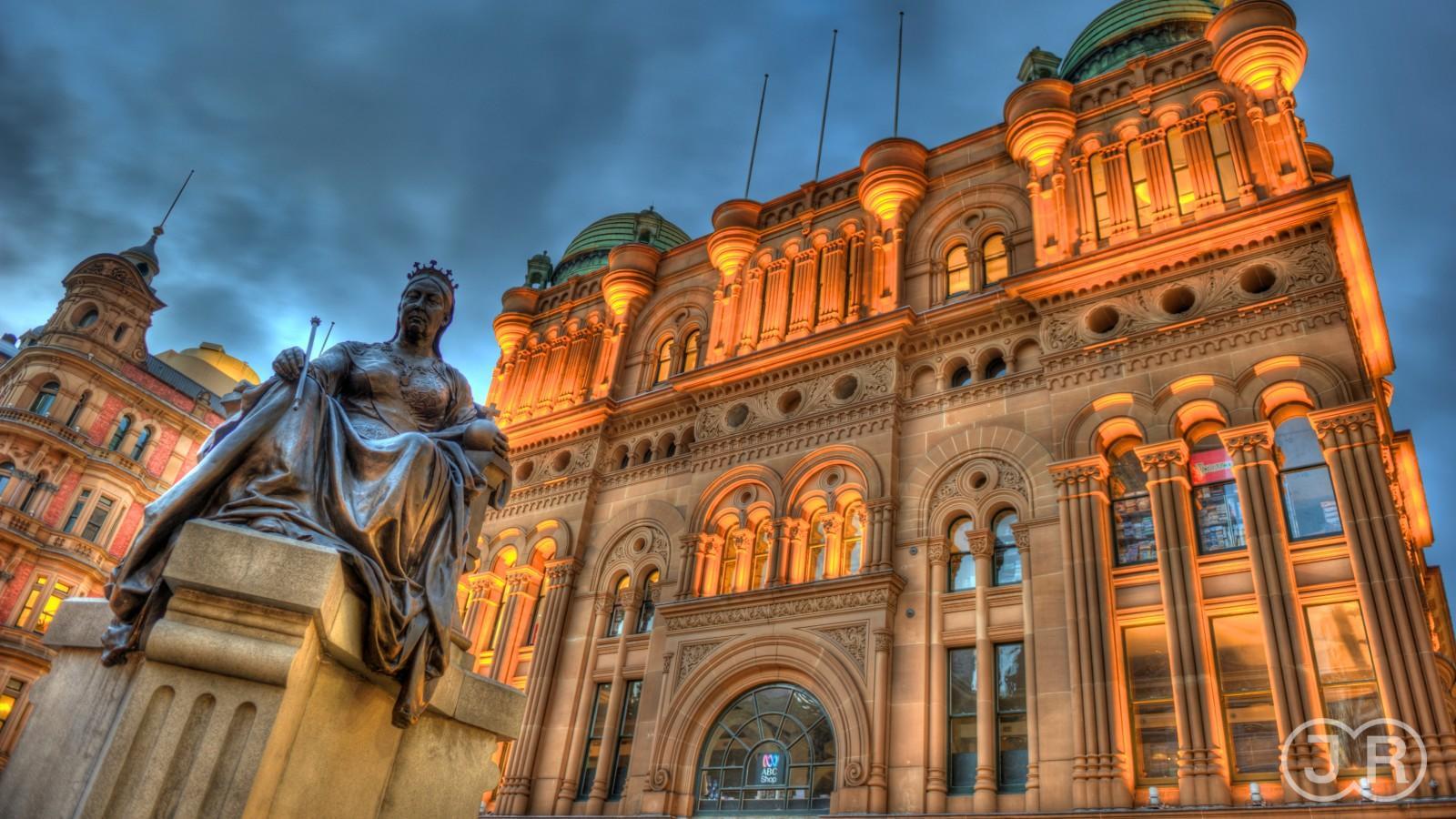 Wide Angle View of the Queen Victoria Building or QVB Including the Queen Victoria Building Logo The historical building is sydney's most iconic and prestigious shopping destination, attracting millions of local and international visitors each year. Its elaborate federation romanesque revival architecture presents a contrast to the modern buildings that surround it. 1897 council resolves to name the building the queen victoria markets building in order to mark, in a fitting manner, the unprecedented and glorious. Queen Victoria Building Logo.