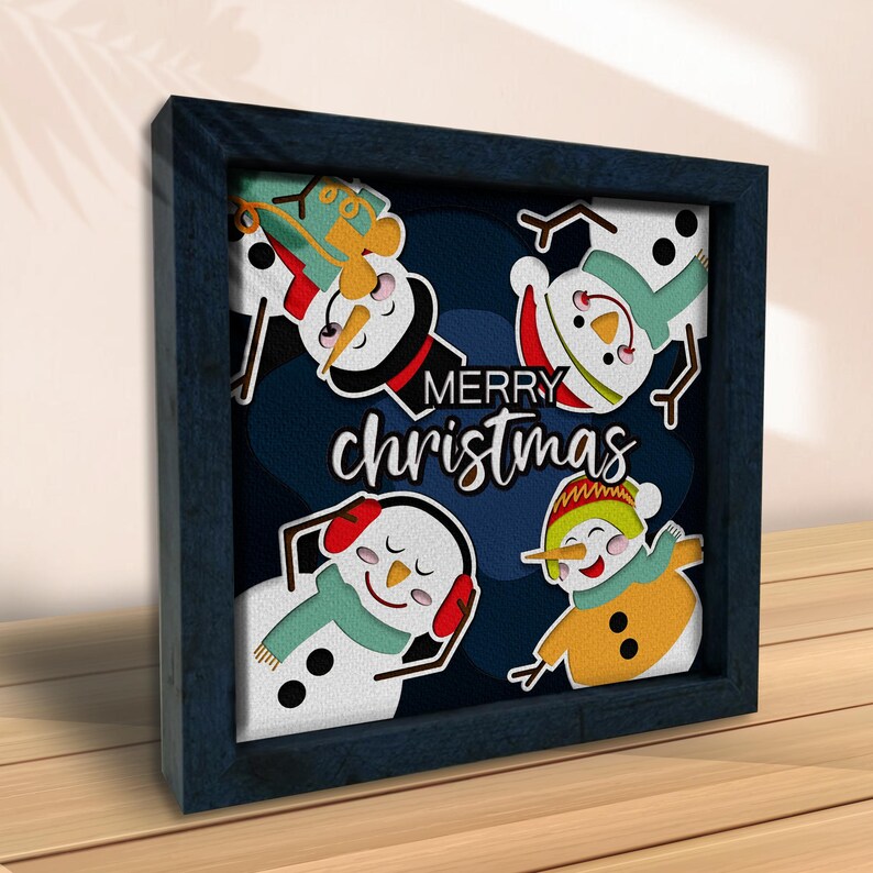 Snowman Shadow Box SVG, Snowman 3D Box, Christmas Shadow Box, Merry