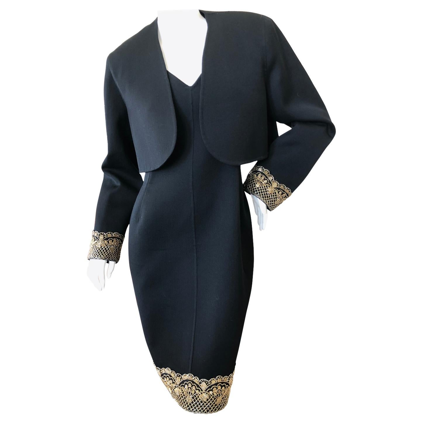 Geoffrey Beene Vintage Black Dress and Bolero w "Scallop Lace" in Gold