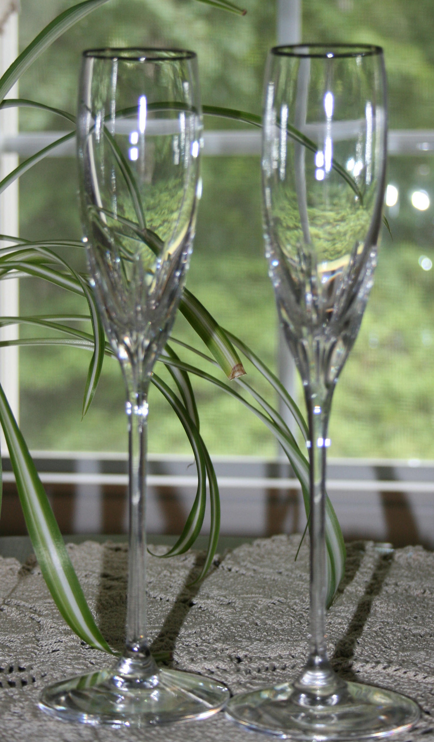 Vintage Lenox Crystal Firelight Platinum Champagne Glass Set of 2 Circa