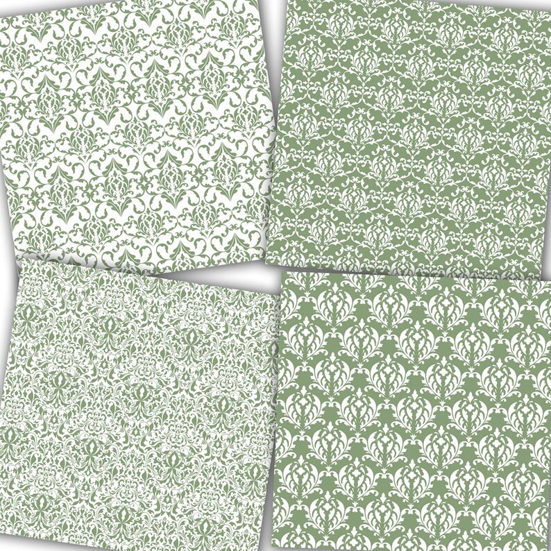 Sage Green Digital Paper sage Damask Green Etsy