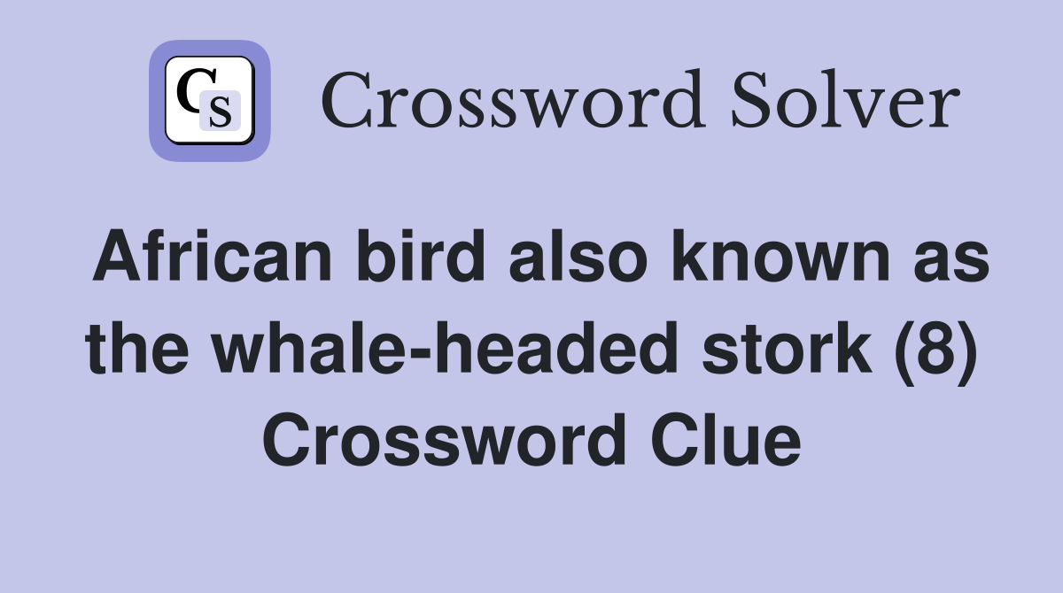 African bird also known as the whaleheaded stork (8) Crossword Clue