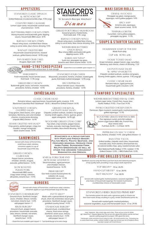 Stanford's Restaurant & Bar menu in Walnut Creek, California, USA