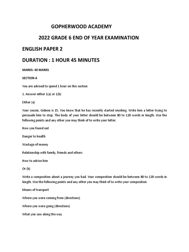 Grade 6 English Paper 2 2022 PDF Irrigation Agriculture