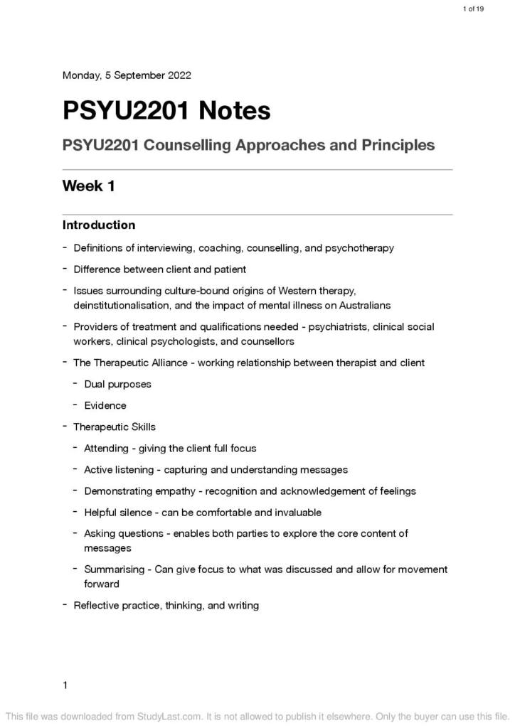 Notes for Counselling Approaches and Principles (PSYU2201) at Macquarie University StudyLast