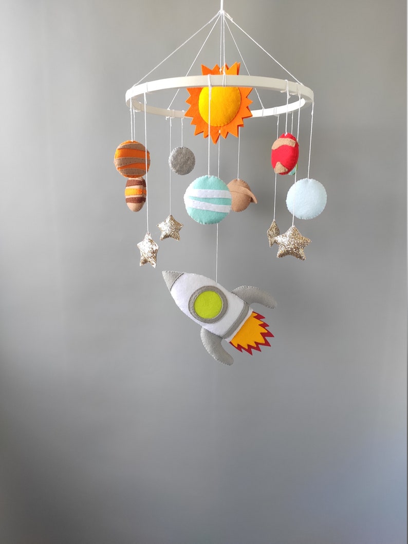 Solar System Mobile Nursery Space Mobile Baby Boy Felt Etsy Baby Room Planet Mobile Mobile features the sun and the eight planets: Check out our planet baby mobile selection for the very best in unique or custom, handmade pieces from our mobiles shops. With our solar system mobile in your orbit, you'll have the most stellar nursery decor in the universe. It features a painted wood frame with planets, a spaceship and an astronaut.. Baby Room Planet Mobile.