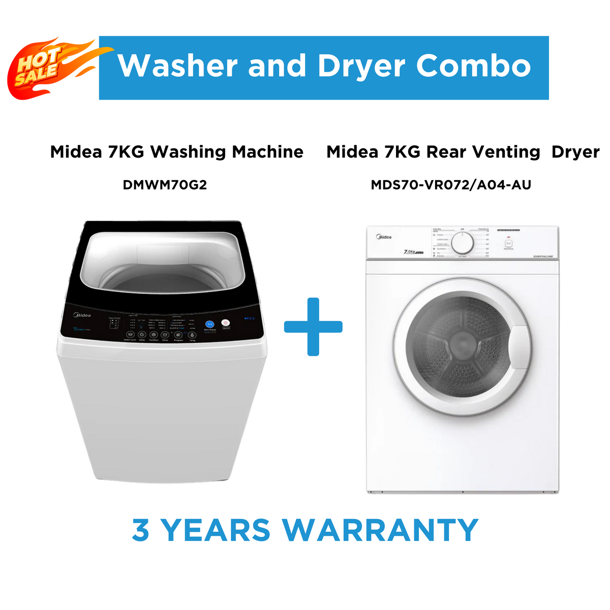 Midea 7kg White Laundry Combo 7KG Top Load Washing Machine + 7kg Ven Midea Homes