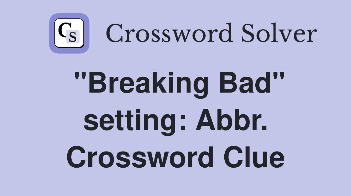 "Breaking Bad" setting Abbr. Crossword Clue Answers Crossword Solver Breaking Bad Setting Crossword Clue Here is the answer for the crossword clue breaking bad setting: Is a crossword puzzle clue that we have spotted 1 time. Here is the answer for the crossword clue setting for much of 'breaking bad' last seen in new york times puzzle. There are related clues (shown below). Solve your breaking bad setting crossword. We have found 40 possible. Breaking Bad Setting Crossword Clue.