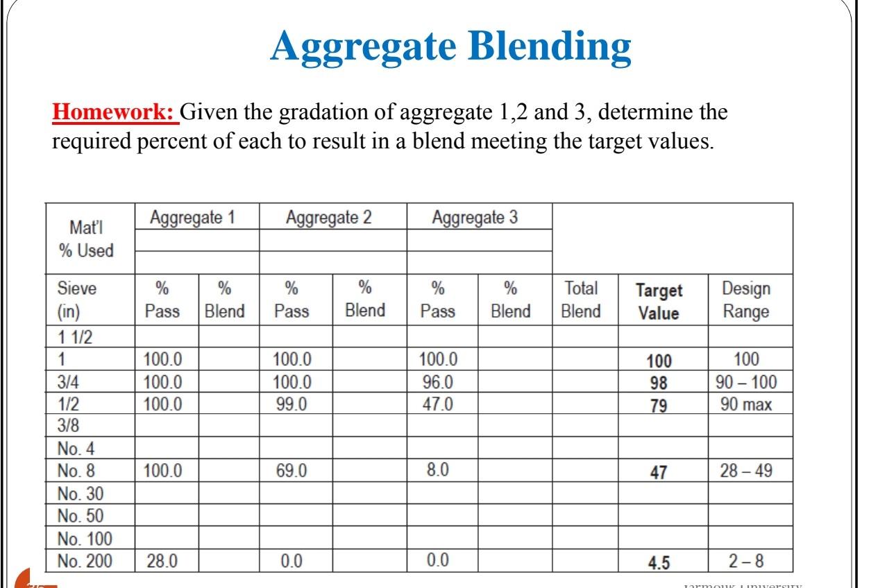 Solved Aggregate Blending Homework Given the gradation of