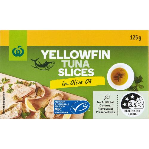 Woolworths Yellowfin Tuna Slices In Olive Oil 125g bunch