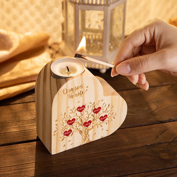 Personalized Wooden Heart Candle Holder with Family Tree Pattern CALLIE