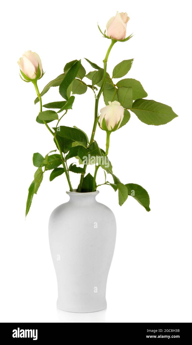 Beautiful roses in vase, isolated on white Stock Photo Alamy
