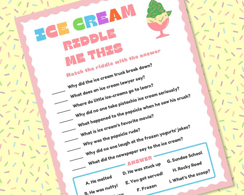 Ice Cream Riddles, Ice Cream Social Game, Ice Cream Birthday Activity, Printable Ice Cream Jokes Riddle For Ice Cream They are quite exciting and challenging. In this delightful collection, we’ll explore a variety of ice cream riddles that’ll make you giggle, scratch your head, and maybe even drool a little. Now that you know so much about these riddles, go and check out the list of various ice cream riddles given below. Perfect for sunny days or cozy nights,. Riddle For Ice Cream.