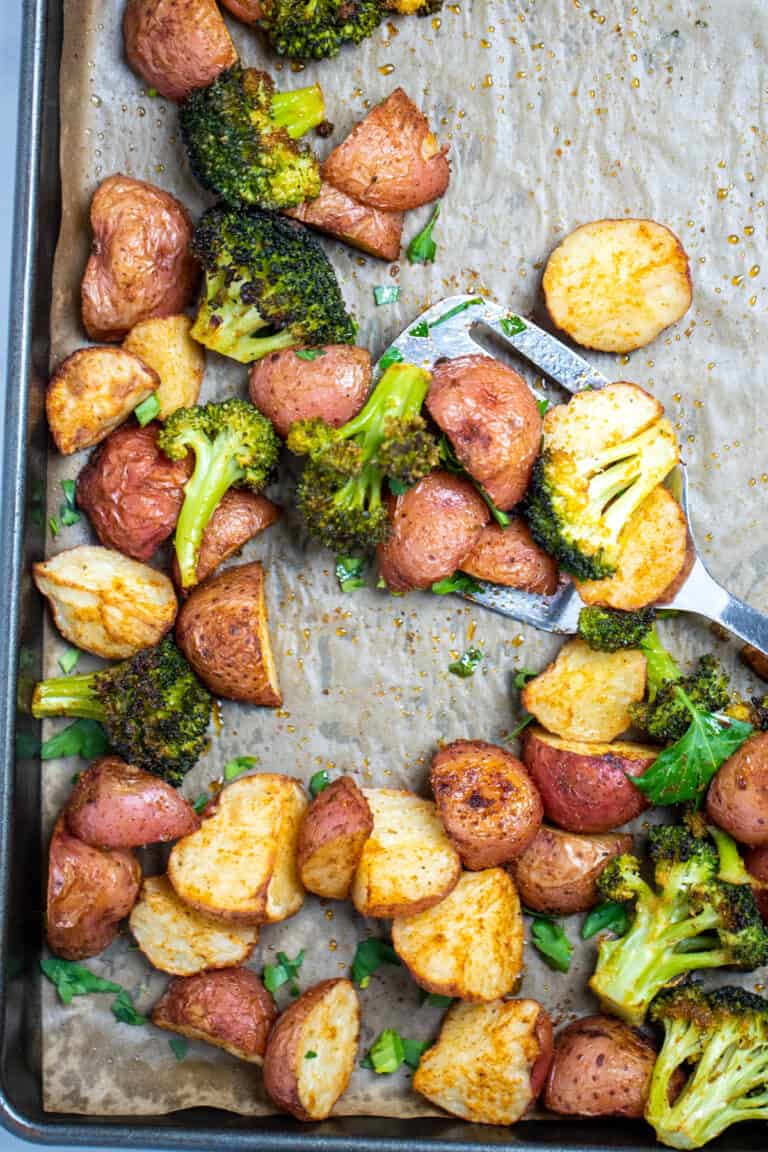 Roasted Potatoes and Broccoli • Dishing Delish