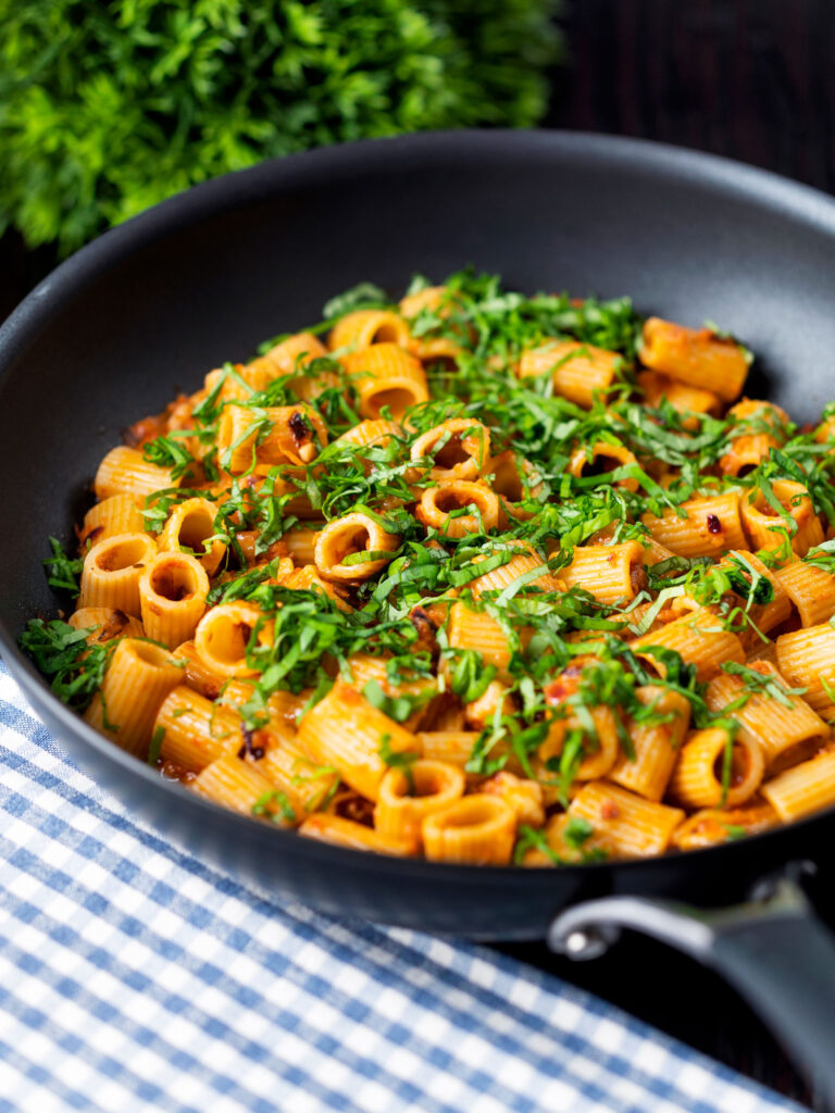 Halloumi Pasta with Red Tomato Pesto Krumpli