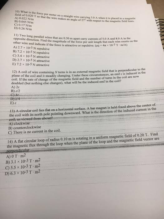 Solved What is the force per meter on a straight wire