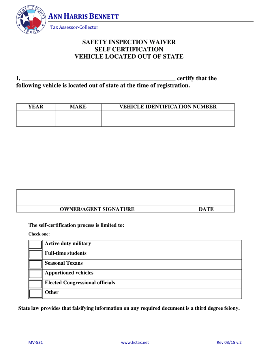 Form MV531 Download Fillable PDF or Fill Online Safety Inspection Nc Safety Inspection Waiver The division must issue a waiver if it determines that the vehicle qualifies for a waiver. A motor vehicle must pass an annual safety inspection before it can be registered in north carolina or the. Division of motor vehicles’ license & theft bureau may issue a waiver for a vehicle that meets all the following conditions: A motor vehicle registered. Nc Safety Inspection Waiver.