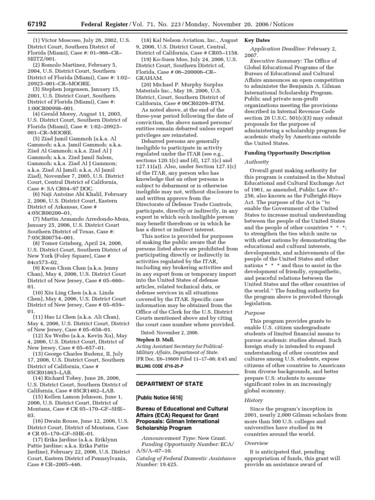 Notice Arms Export Control Act Gilman International Scholarship